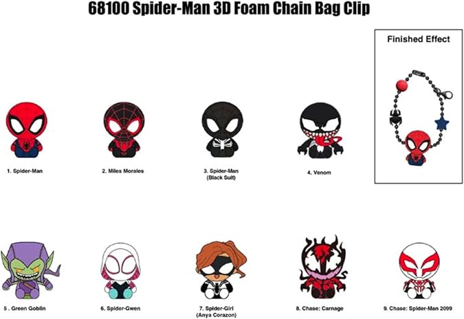 Spider-Man Figural 3D Foam Charm Bag Clip - Key Chain Bag Charm in Blind Box w/Matching Sticker - ONE RANDOM CHARM