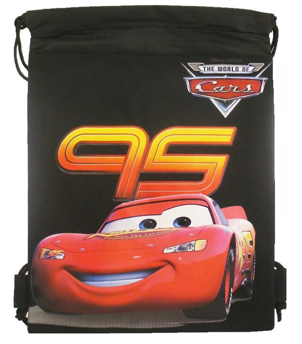 DISNEY CARS MC QUEEN DRAWSTRING STRING BACKPACK SCHOOL SPORT GYM TOTE BAG (BLACK)