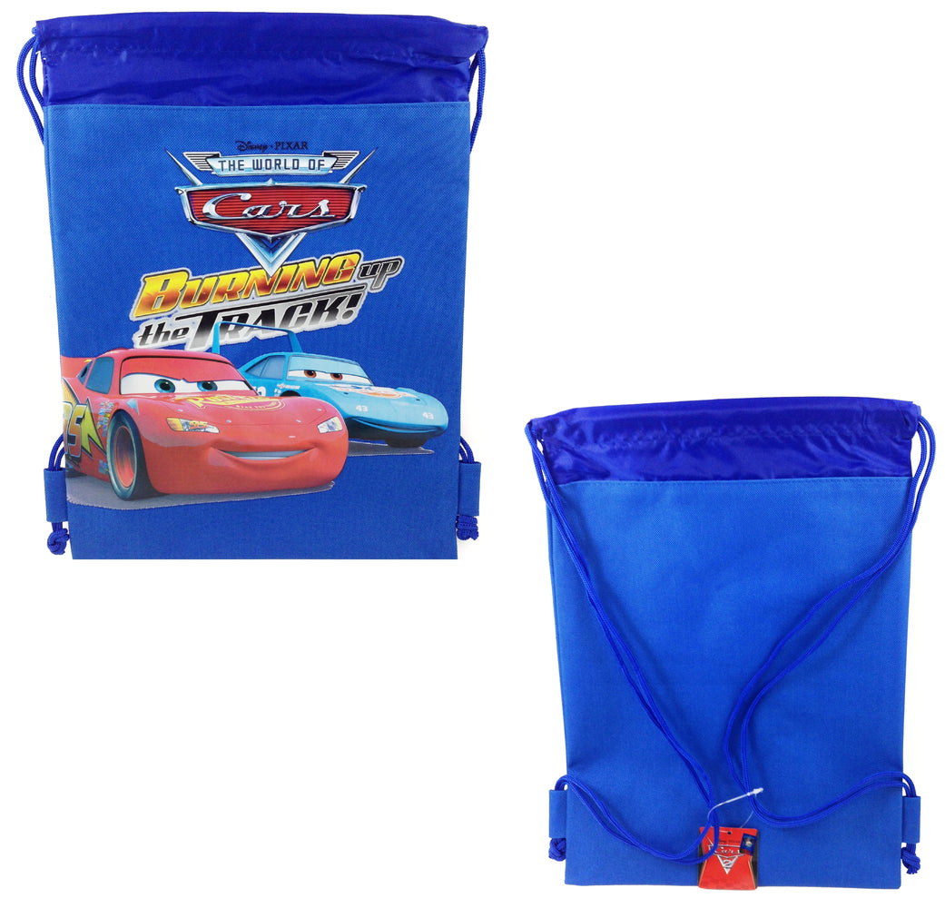 DISNEY CARS MC QUEEN DRAWSTRING STRING BACKPACK SCHOOL SPORT GYM TOTE BAG (BLUE)
